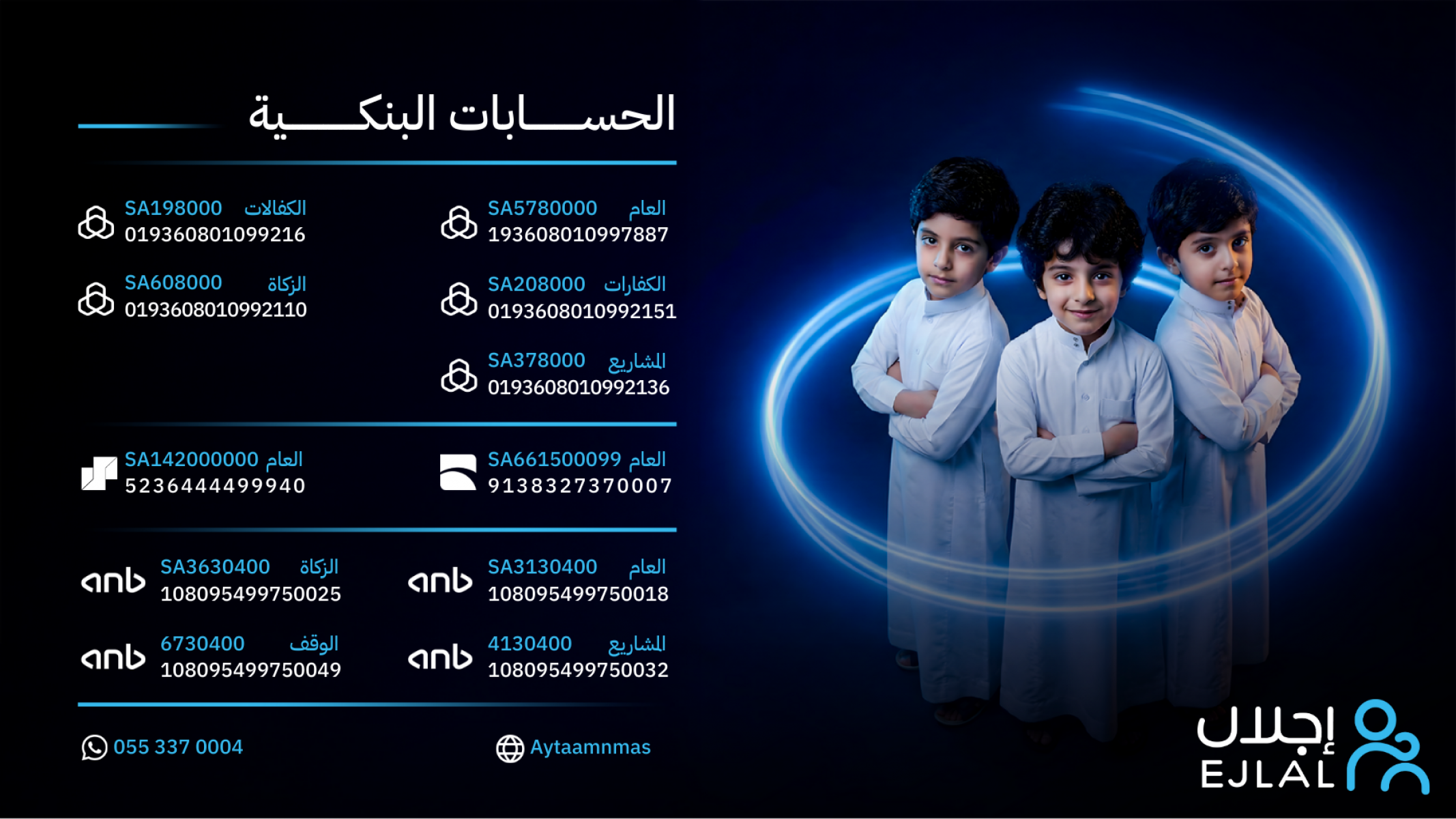 الحسابات البنكية لجمعية إجلال لرعاية الأيتام